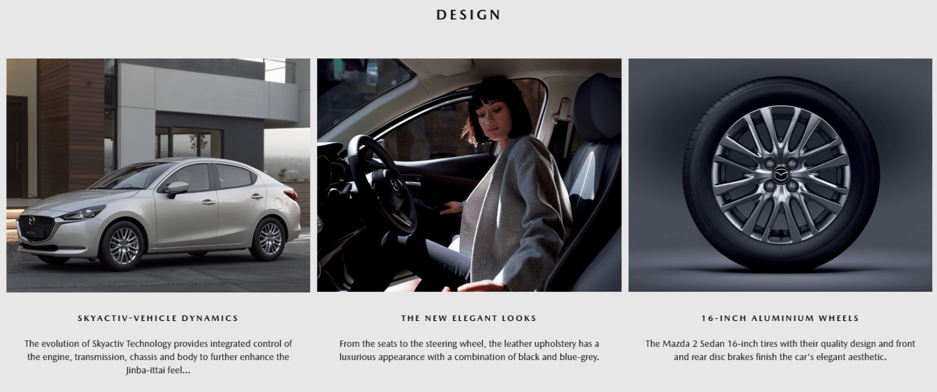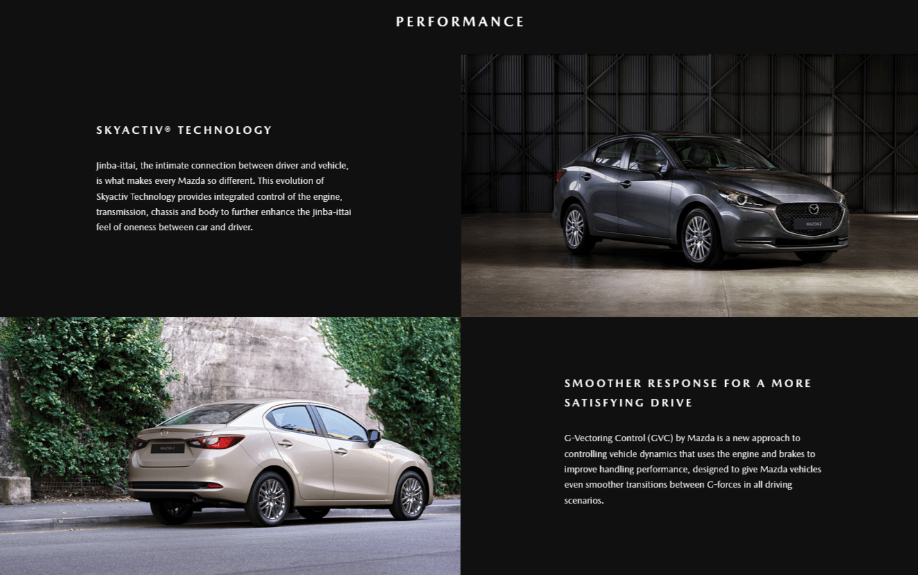 Varian Hatchback tampil lebih dinamis dan kompak, cocok untuk gaya hidup aktif dan ruang parkir terbatas. Sementara versi Sedan memberikan kesan lebih formal dan ruang bagasi ekstra, menjadikannya pilihan ideal untuk perjalanan jauh atau kebutuhan kerja. Dengan fitur keselamatan lengkap dan handling yang presisi, Mazda 2 tetap menjadi pilihan cerdas bagi mereka yang menginginkan mobil stylish, hemat, dan menyenangkan dikendarai.